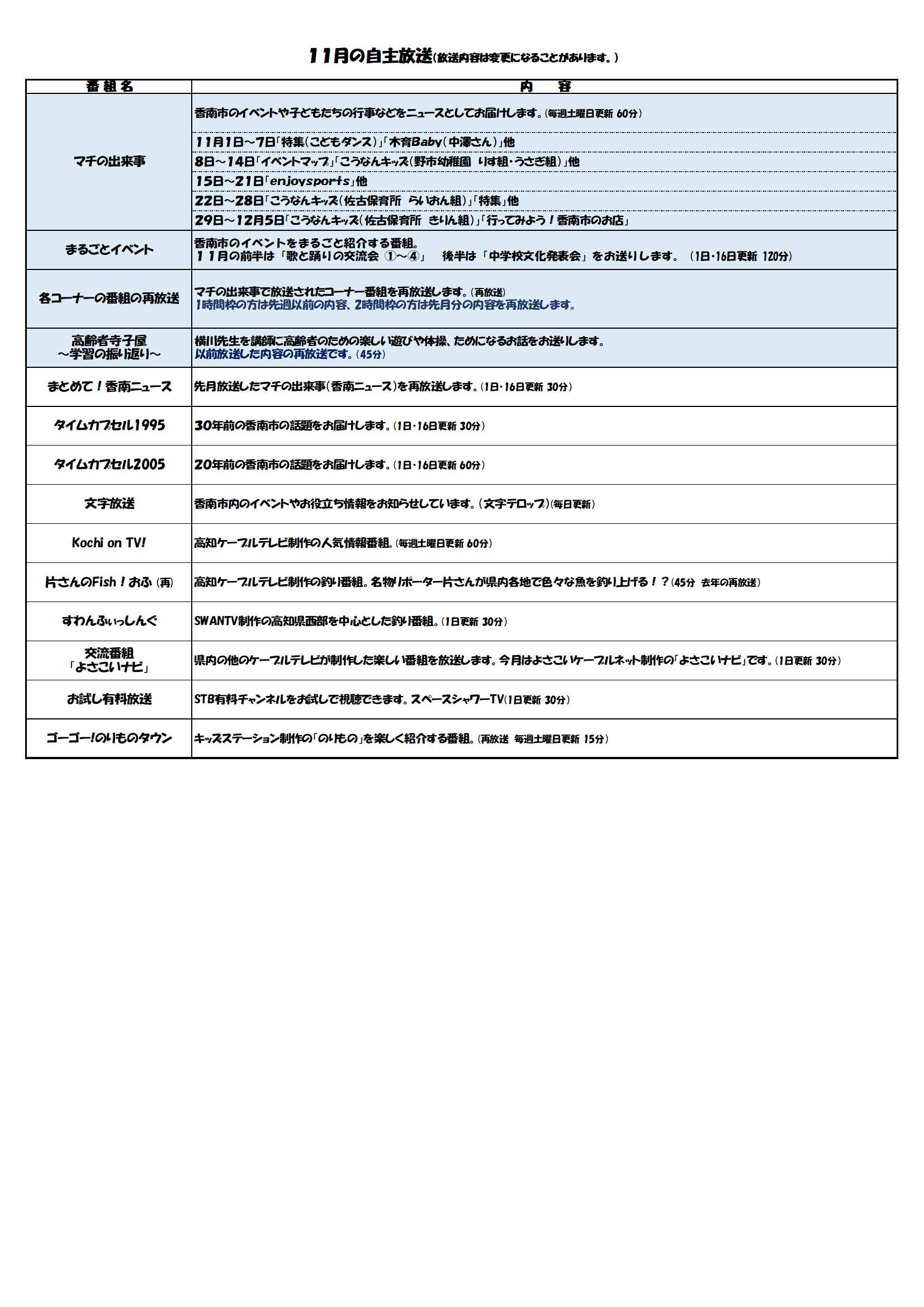 2025年11月 番組表(10月29日更新)