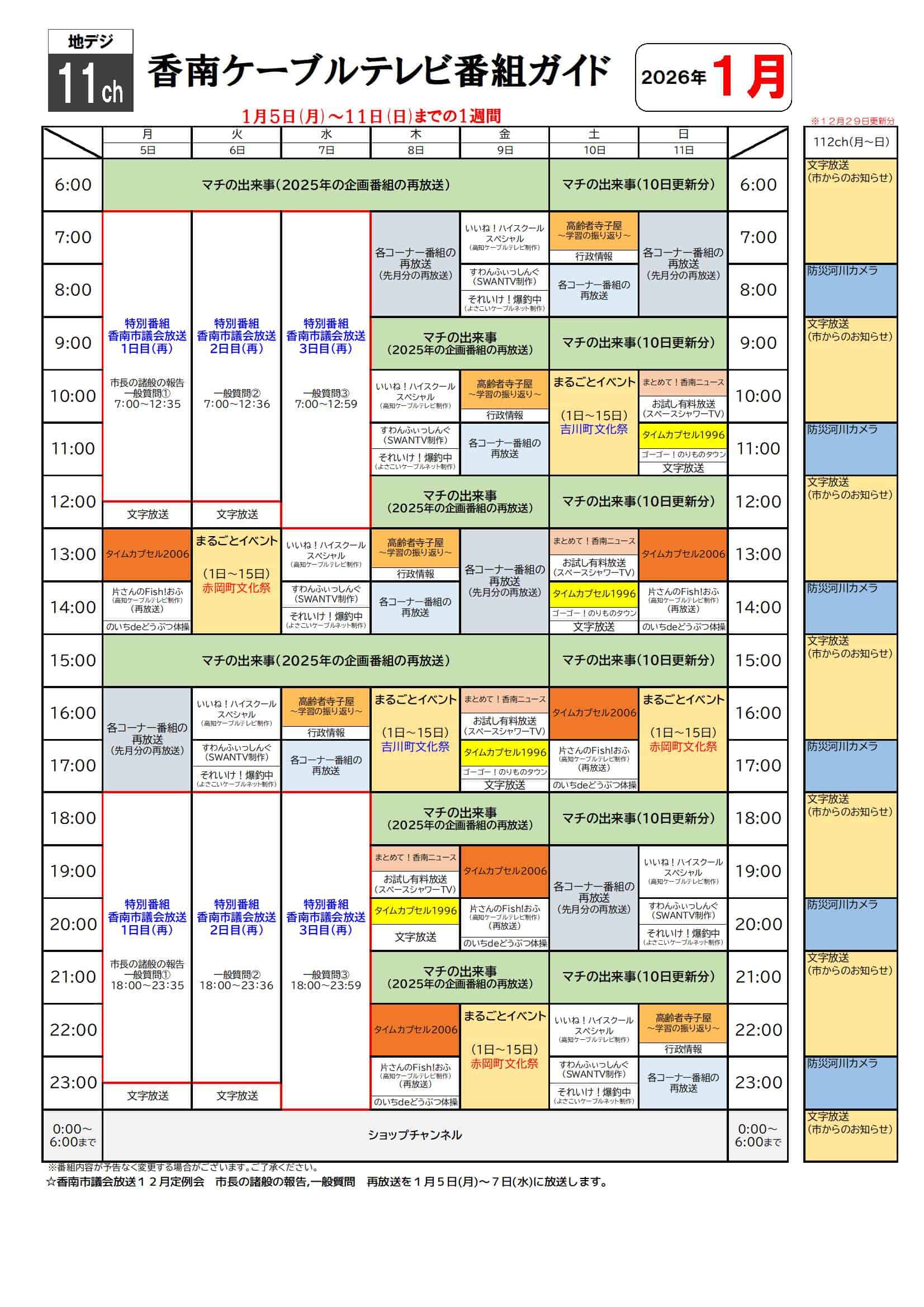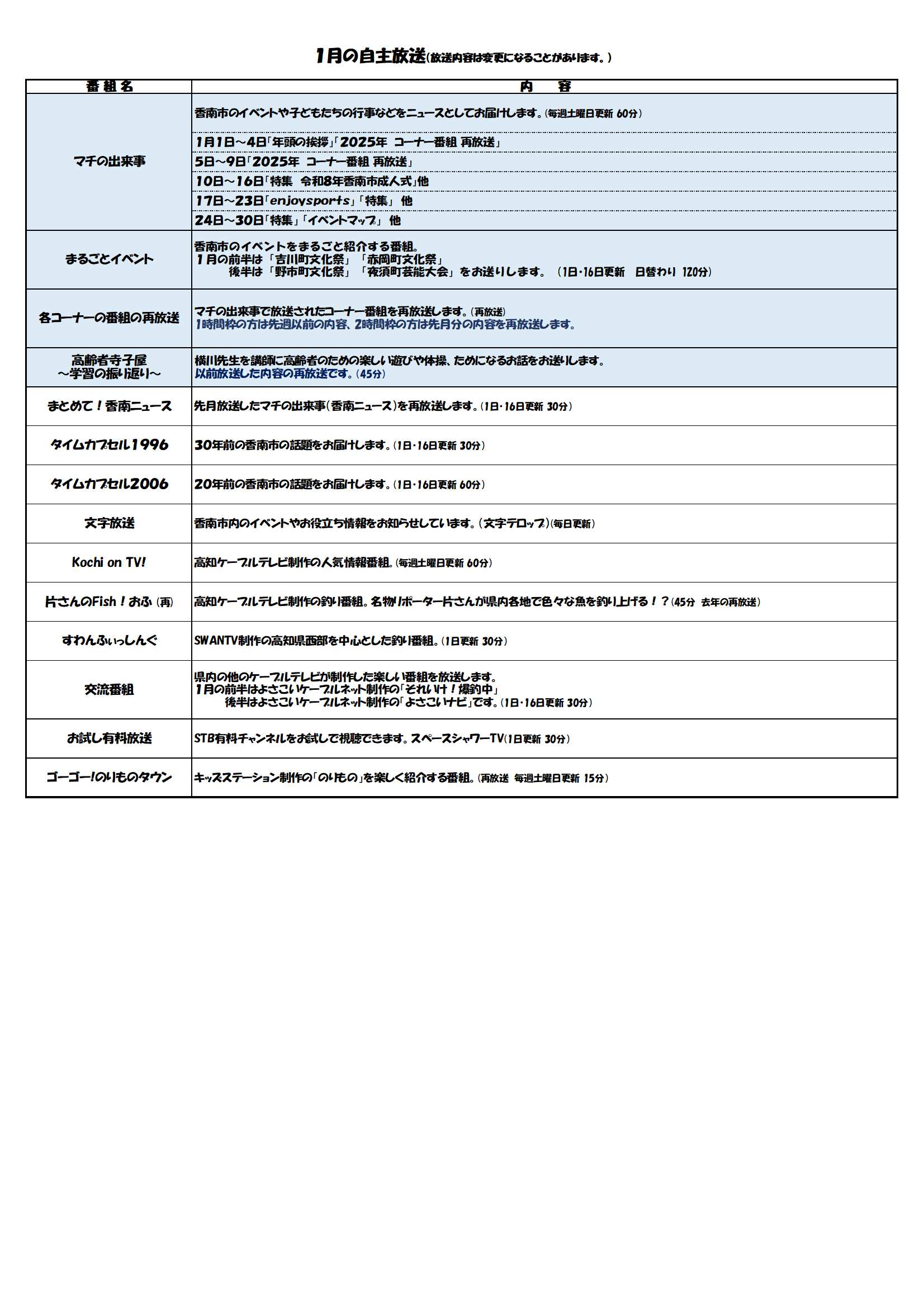 2026年1月 番組表(12月22日更新分)