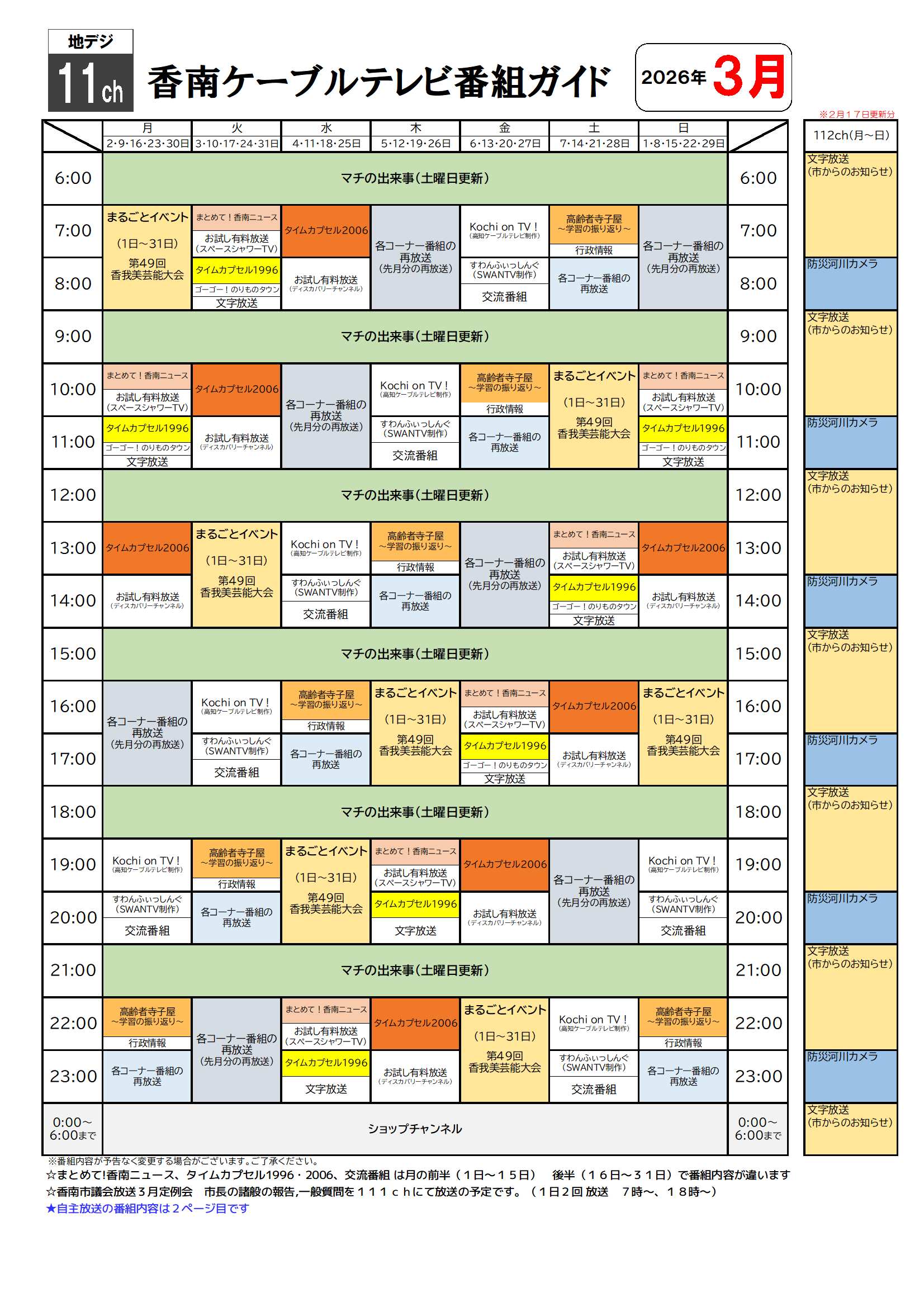 2026年3月 番組表(2月17日更新分)